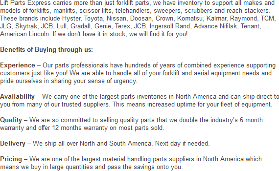 We have first-rate prices on all our forklift parts. If you are interested in receiving an estimate for our parts or attachments, give us a call today at: